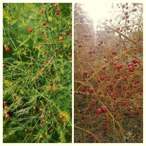 アスパラガス♪ 小さな苗を戴いて24年 代替わりしながら、毎年立派なアスパラガスが育っています。 実も可愛いでしょう♪ 雪が降る前に!!(4) 「左10月28日右11月24日」撮影