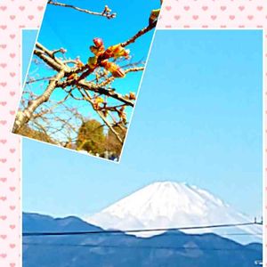 お天気が続いて、富士山🗻がキレイです✨✨✨✨ 先週の雪❄️も手伝って、神々しいほど真っ白な🗻ですが、河川敷の桜🌸はつぼみがほころび始めました‼️ この辺は河津桜なのかな。 それとも暖冬のおかげ???