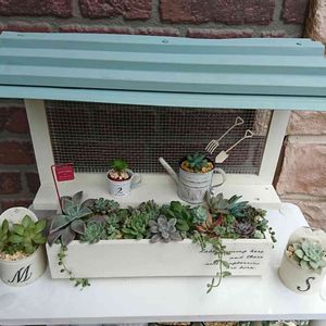 お誕生日プレゼントに貰った手作りの木箱に寄せ植えをしてみました❤ すごく可愛いくて ずっと眺めてます😆 1番のお気に入りになりました😍