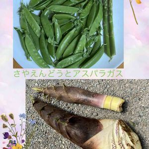 我が家のさやえんどうもたくさん採れてきました 昨年植えたアスパラガスもやっと収穫できてきました 筍は、いただきました❣️ 旬の野菜は美味しいですね
