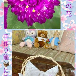 薔薇とダリアの花達がいっぱいのお宅のお母様から 手作り籠に千日紅を摘んで入れて、プレゼント🎁 素敵な花籠の、お土産までありがとうございました