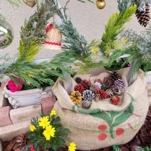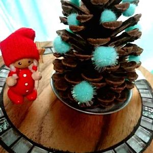 大きなマツボックリをクリスマスツリー風にしてみました。