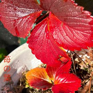 苺🍓の葉がいちごより赤い⁉️ 苺の実🍓は、終わってしまったけど,すごい紅葉🍁 我が家の花畑の陽だまりで,猛アピールしてます‼️