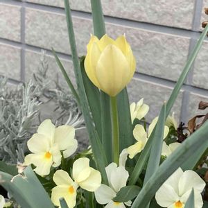 植えっぱなしでいいという言葉に惹かれて植えた原種チューリップ。細くてちっちゃくて可愛らしい。蕾の時は赤と黄色のツートンでしたが、花開いたら黄色でした。下のビオラも黄色ばかり咲いて、ここは黄色コーナーになりました☝️😊 あっという間に散ってしまいました😱植えっぱなしでよい球根は、ビオラが終わったら例えば日々草を植えても良いものでしょうか?