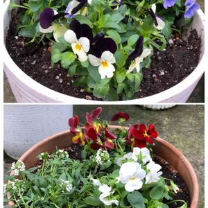 チューリップとビオラのデッカー植え あっ、下の鉢にはアネモネ(紅白の色)植えたのでトリプル植えでした😅アネモネは吸水してから植えましたが、初めてなのでどうなることやら🤔 チューリップも昨年の掘り起こしなので、分球してて小さく咲くかどうか分かりませんが、せっかくなので😊デッカー植えなのでビオラはノーブランド。でもカラーグラデはこだわりました😊 あっ、アリッサムも植えました💦