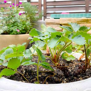 ランナーで増えたイチゴ苗を植え替えました🍓イチゴ苗の下にはチューリップ球根をデッカー植えしてます🌷春が楽しみ🥰