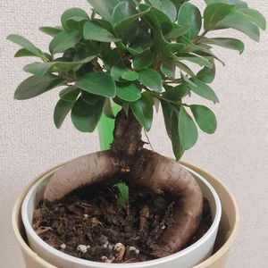 初代ガジュマルさんの植え替え完了しましたー(*´꒳`*) 下の方の葉っぱがちょっと元気ない色で💦 鉢底見たら根っこ出てた😖 近くのHSには気にいる鉢売ってないし😤 園芸店まで足を伸ばしてゲットだぜ‼️ イオン→園芸店→HS→植え替え〜してやっと一息💨 剪定もしたいけど、植え替えたばかりなのでしばらくして、でも梅雨前にやりたい(● ˃̶͈̀ロ˂̶͈́)੭ꠥ⁾⁾