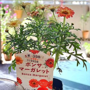 平和に 震災を忘れずに 🌏地球を♥️生命を大切に 職場ホムセンの帰り道はお花コーナーを通ります 10/9 ヘロヘロの仕事帰り 晴れたりゲリラ並みの雨降ったり変な天気に翻弄ヘトヘト😓 なんですが 👀💛🧡❤️いたー 大好きで恩人(花?)の サントリーフラワーズ 💛ボンザマーガレット❤️ その ボンザのニューフェース 【サンセットオレンジ🧡】 お色がグラデーション すっごくかわいいわぁ お仕事 必死で頑張った甲斐があった お休みの午前中は爽やかー秋晴れ☀️ ボンザの植付け完了 正午にベランダの真ん前の電柱スピーカーから流れる【松江市の歌】 聞きながら 🟡コロロと🌿イタリアンパセリ 植えちゃった