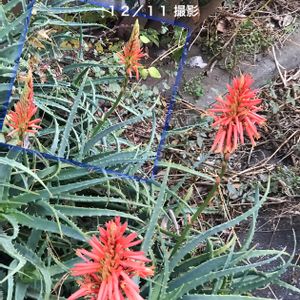 アロエ(💖∀💖)キラーン✧満開〜🥗🤗 久しぶりに🚴通った ☆アロエのある路☆ 咲いていました、ピッカピカに(。◕ ∀ ◕。) 持ち主の方は、ご存知なのかなぁ🙄🧡 アロエの野性味を感じる咲き方なんです☝️ 左側に、電柱を挟んでもう一輪、ちょっと小さめに咲いています∩(´∀`❤)∩ワァイ♪