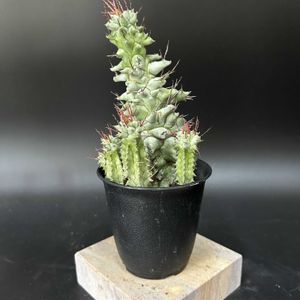 ユーフォルビア ホリダ モンスト 親株も落ちた仔株も 伸びてきました。 棘の赤が美しいです。 ホリダ : 棘だらけの 荒々しい