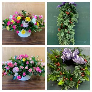 ホリゾンタル ホリゾンタルホーガス プリザーブド ホリゾンタル初級 片面構成主にテーブルアレンジに ホリゾンタルホーガス中級 同じくテーブルアレンジ プリザーブド お正月アレンジ 御所車でちょっと豪華に🌹 生徒さんの作品