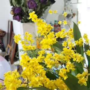 おはようございます😊 探していた オンシジューム ちょうど良いサイズをget😆 良い香り🤣🌼 右上にちょっと写っているのは ミニ胡蝶蘭の花芽😃 楽しみ過ぎます😍 皆様素敵な一日を~🍀