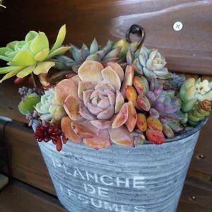 9月に投稿したみどりんだった寄せ植え〜♪ 開きすぎてたサランもほんの少しきゅっとなって、やさしい色あいに変わってきました💗 2月に狩ったときはこんな色じゃなかったけど、これからどんな風に変身するのか楽しみだなぁ〜( *^^人)♬*