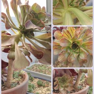我が家の小人の祭り💕 これもアエオニウムですね☺️ 昨年お迎えしたばかりで、まだここにしかいません。 追記 こちら、小人の花束と教えていただきました。 葉の薄いのが特徴だそうです。 さっちぃ〜さん ありがとうございます☺️