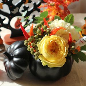 ハロウィンアレンジを作りました🎃🎃 黒パンプキンにイエロー系のお花のアレンジ。