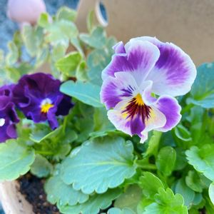 先週寄せ植えしたこちらの鉢も、お花が沢山上がってきてゴージャスになってきました💓 紫と黄色の組み合わせが可愛い〜💓 葉っぱももりもり健康そうで良かった良かった✨
