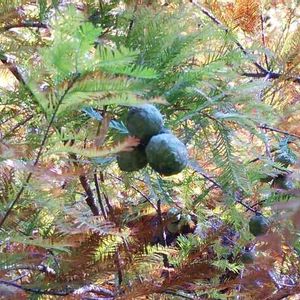 今日はお出かけで京都の大山崎山荘美術館へ😊✨ 周辺木々の紅葉はしてたけど、まだ青いところが多かった❗ これは美術館の前にあったラクウショウ(ヌマスギ)の枝葉と実( 〃▽〃) メタセコイアに似てるけど、違う❗😲 枝の付き方と葉の付き方が、 ラクウショウは互生、メタセコイアは対生してて、 実は、ラクウショウの果鱗の先は槍型に尖っていて、 メタセコイアの果鱗の先は横に長くて中央がへこんでいる…ねんて(*_*) 名前の立て札がなかったら、わからんかった💦