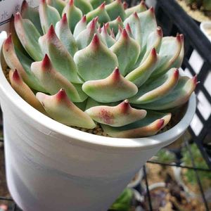 ・ 可愛い水密桃になってくれました♡♡♡ 左上の韓国苗の葉っぱを挿し木して約一年! やっと2寸ポットの売れる大きさに…… 軒下のワイヤーラック産にしては可愛いかな? 今日はこの水密桃のベビちゃん達を メルカリに出品しました〜〜 自宅で育てた多肉達を メルカリにて販売してます。 メルカリの🔎で「 #ママchian 」で検索するとヒットします。#も付けてね〜〜 #多肉販売日の出町 #多肉販売エンジェルドロップ #雑貨屋 #雑貨屋エンジェルドロップ #エンジェルドロップ