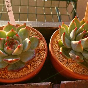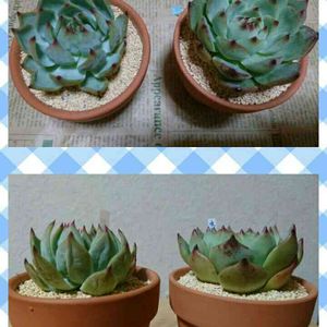 こんばんは😊 手前、パッカーンの桃太郎さん☺️ 奥、水蜜桃さん。 中国では日本の桃太郎を水蜜桃と呼ぶそうなんですが、並べて見ても同じかどうかわかりません😅 水密桃はまだうちに来て、そんなにたってないので、そこまでパッカーンなってませんが、それでも暑くて開いてきました😅 桃太郎は毎年、夏はパッカーンです😊 育つ環境が違うと、多肉ちゃんもわかりにくいです😊 でも、どちらも爪が綺麗です😊 相変わらず、おとぼけ顔の七宝樹😆 これから秋になってくると、多肉が紅葉してくるのが、楽しみです😊🧡💚 今日もお疲れ様でした😊