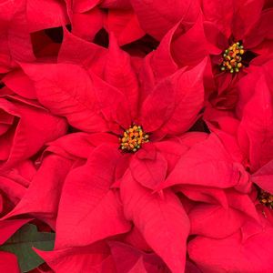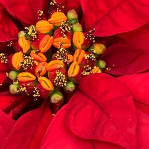 ポインセチア 赤 赤い花の様なのははなではなく、苞というものです。 まるで宝石の様な集まりが花です。 作り物ではないかと思うくらい輝いている様に見えて美しいです💖