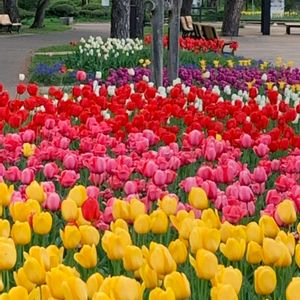 今日のお花、チューリップ 常磐公園には毎年色とりどりのチューリップが咲いています。 憩いの場所です。 昨年5月のpicです。