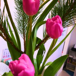 雪が降っています。 19日まで外出を控えるようにと知事の宣言。 怖いなあと思いながら花屋へ 正月の松がまだ元気。 チューリップを加えて春らしく。