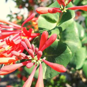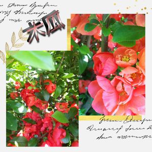 真っ赤で可愛い花、ボケ。 ネーミングが、可哀相ですね。 散歩道にて。