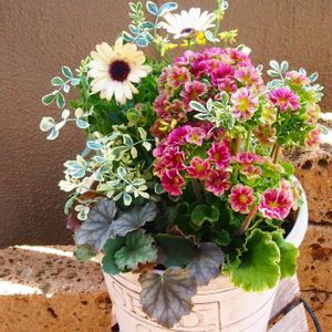 ホワイトポットに♪ プリムラ オブコニカ プリカントの寄せ植え アンティークなピンクの雰囲気ある プリカント ダークな色合いの ヒューケラや クリーム色がかった オステオスペルマムと組み合わせて寄せ植えしました♪ #garden#gardening#flower#ガーデン#ガーデニング#花の寄せ植え#コンテナガーデン#ベランダガーデニング#植物生活#園芸#花#春#ヤフオク 只今、出品中👆#花と緑のある暮らし#植物のある暮らし#humminggarden