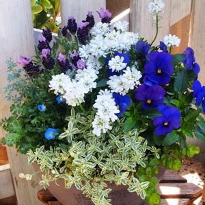 ネイビーのブリキに♪春の寄せ植え デージーやスカビオサ イベリスなど寄せ植えしました♪ ピンクと紫の配色はまとまりのある色合いになりますね #garden#gardening#flower#ガーデン#ガーデニング#花の寄せ植え#コンテナガーデン#ベランダガーデニング#植物生活#ナチュラル#花#春#園芸#鉢植え#ヤフオク 只今、出品中👆#花と緑のある暮らし#植物のある暮らし#humminggarden