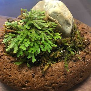 友白髪 いいお名前ですね 岩ヒバ 軽石仕立 手前は山から採取 なんだろ〜 マメヅタのお友達? 多肉のような肉厚君 癒しの空間です
