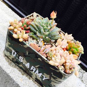 GW最終日はまったりと多肉いじりをしています(^^) 100均で購入した缶に寄植えしてみました。 葉挿しやカットから育ててきた子達を中心に‼︎ さぁ最終日、庭いじり楽しみます。