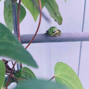 ここ、二階ベランダなんだけど… わざわざ登ってくるのね、かえるさん。
