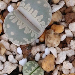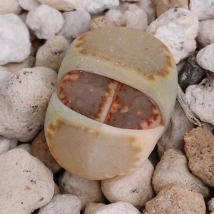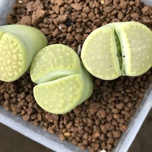 リトープス属 レスリー アルビニカ。 真ん中の枯れた花芽が気になる😑 けど、抜けない😂