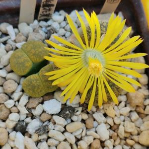 リトープスにお花が咲いていました。°○。*💚 近くで見ると、萼がクルンとしていて可愛らしいです💚