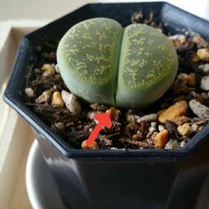 アルビニカも花芽がニョキッ🌱 他の大きなリトープスも、こうして花芽が出てくると良いな😊