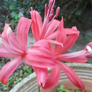 今日のお花─ ネリネ 今年は、 久し振りに鉢植えのネリネも咲きました✨ ご近所さんにいただいたネリネは今年もちゃんと咲きました✨