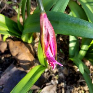 今日のお花─ ネリネ💗 鉢植えのダイヤモンドリリー… 最後の4鉢目のネリネは、葉っぱが先に出て後から咲きました⤴️
