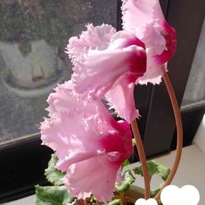 やっぱりね💗 と言われそうですが 葉っぱの茂り方が貧弱なんですが お花を次々に咲かせてくれてる 2年生のシクラメンです