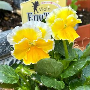 おはようございます😃 風は強いですがお天気回復青空です☀️ ビオラ 💛🤍エッグタルト🤍💛 この可愛らしい姿今年もお迎え🤍💛 ビオラにしては花が大きくフリルも キュート💛💛💛 🏷元気いっぱいビタミンカラー 🏷元気な月曜日❗️ 🏷月曜日は元気色の花 に参加させてください❣ 💛🤍。o♡o。+。o♡o。✨ 。o♡o。+。o♡o。🤍💛