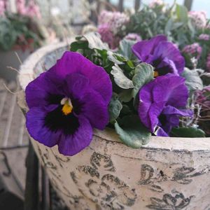 今日、先週地植えしたクリスマスローズに合う𖡼.𖤣𖥧𖡼.𖤣𖥧⚘お花植え付けることを楽しみにしてい たんですが…… 朝から小雨で☔️今は雷様のお出ましです!!/⛈️⚡(´∩ω∩`)💦 軒下で大好きなビオラLadyの花柄摘みして遊んでます。株が大きくなると色合いのグラデーションが豊かになるんですね(σ゚∀゚)σイイネ!!