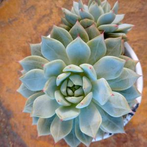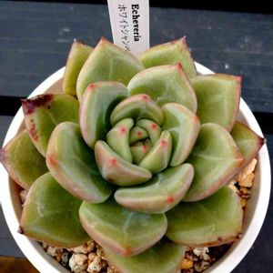 クインテンシス✨ エケベリア属。写りが悪いけどザラザラさめ肌の手触りで面白い🎵 冬にはオレンジっぽく紅葉し、縁は綺麗なピンク❣️子株も出るみたい🎵 成長が楽しみなエケちゃんです😚