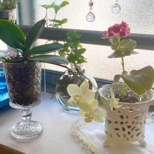 ミニ胡蝶蘭💛 5月初めにお迎えした後 まだお花残っています♪ ベゴニアさしめにも 極小お花^_^