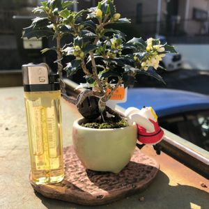 姫ヒイラギ小品盆栽😆ダイソーの紙鉢が崩れてしまい2度目の植替になってしまった……😅ちょっと心配😓 そうそう、ダイソーさんの名誉の為に、紙鉢が悪い訳では無く夜な夜なナメクジが鉢を食べて行くから…🥺