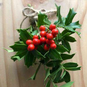 庭の姫ヒイラギと千両で、ミニスワッグ😊