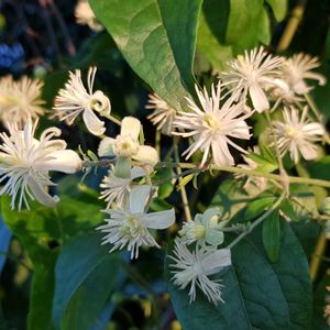 かわいく、個性的な白い花🎶 お二人のご助言を頂き、 "クレマチス•ヴィタルバ"という種類に落ち着かせてもらいます😅 イヤー、難しいですね。 今は、ただこの花の自然の美を楽しみます☺️ 薬用植物🌿でもあり、毒性⚠️もある。 学名:Clematis vitalba 🇩🇪名:Die Gewöhnliche Waldrebe キンポウゲ科センニンソウ属