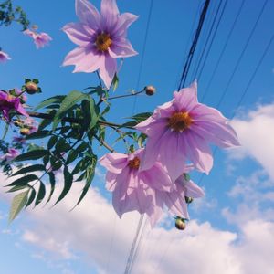『皇帝ダリア🌸&飛行機雲✈️☁️☁️』 別の角度から 違う飛行機が…。 飛行機雲✈️☁️とのコラボです✨✨