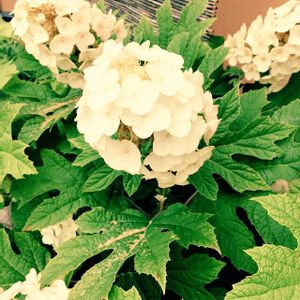 最初見た時は何の花だったか忘れてた…。お店に咲いていた柏葉アジサイ。