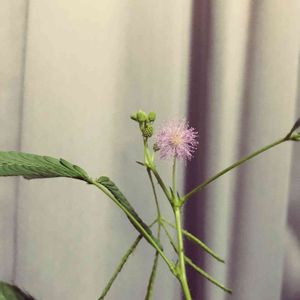 オジギソウの花が咲きました🙌 葉も面白い性質なのに、花も面白い形なんですね!何とも不思議な植物です☺️