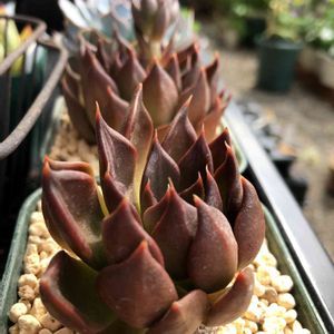 エケベリア(Echeveria) ブラックプリンス/黒助 左pic 親株で昨日9月に蒸れてばらばらになってしまった💦 右pic ばらばらになった親株の葉挿しが大分大きくなりましたよ👍今年は蒸れないように育って欲しいです🙂