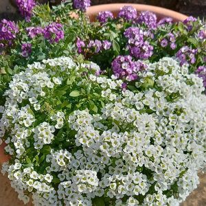 一雨ごとに冬が近づく感じがします。🍂🍁☔️❄️ ①アリッサム 白だけモリモリ元気。 ②コキア 軒下ギリギリなので半円だけど綺麗に色づきました。 ③観賞用トウガラシ ブラックパールがピカピカになりました。名前に負けてません。 ④ミニ大根(紅白) プランター栽培で順調に成長中。😋
